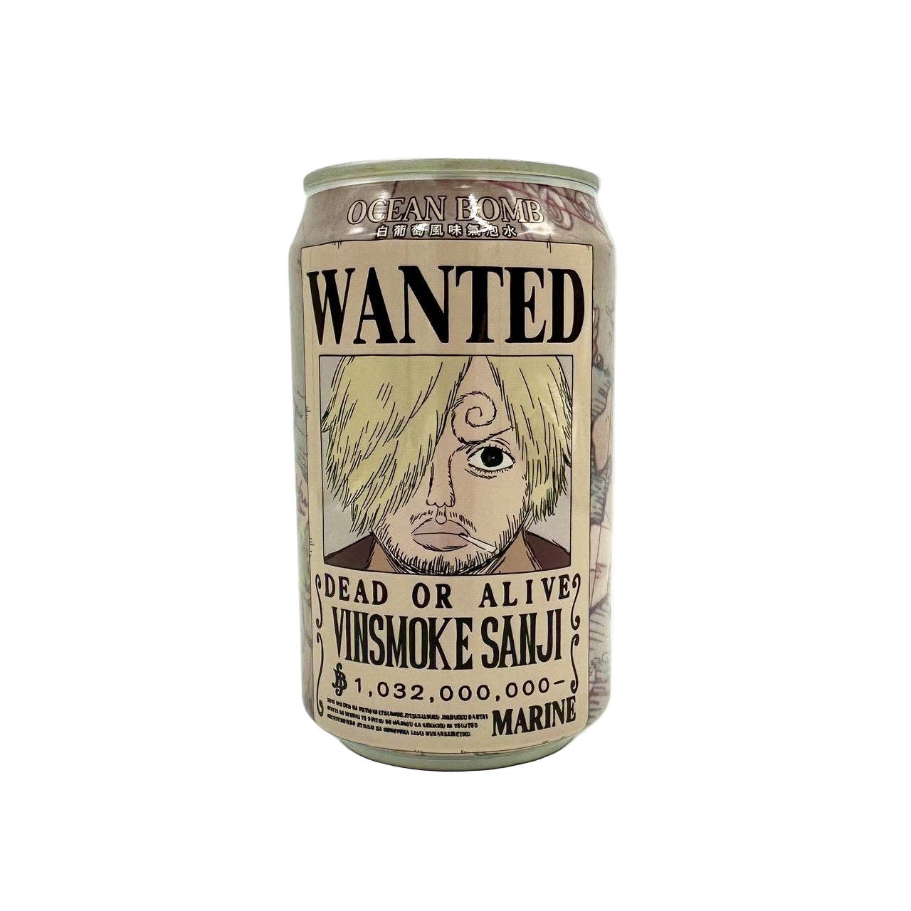 Set sail for sweetness with Ocean Bomb One Piece Wanted Poster Edition White Grape Flavor! This collectible soda combines crisp, juicy white grape flavor with Ocean Bomb’s signature sparkling refreshment. Each limited-edition can features a One Piece “Wanted Poster” design showcasing your favorite Straw Hat pirates — making it a must-have for both anime fans and collectors.